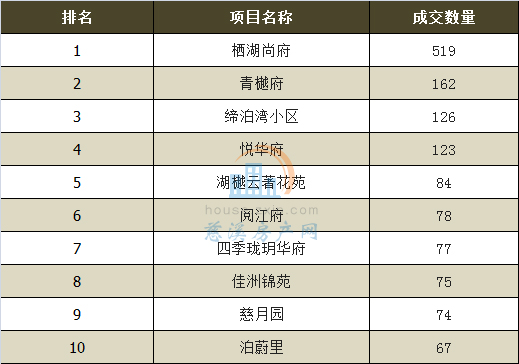 从成交排行榜上看,位于龙山镇的栖湖尚府以519套的成交量夺得7月份慈溪商品住宅交易套数排行的冠军宝座,领跑慈溪楼市,而宗汉街道的青樾府以162套的成交量居于亚军位置。紧接着是宗汉街道的缔泊湾小区,以126套住宅成交量跻身前三甲。