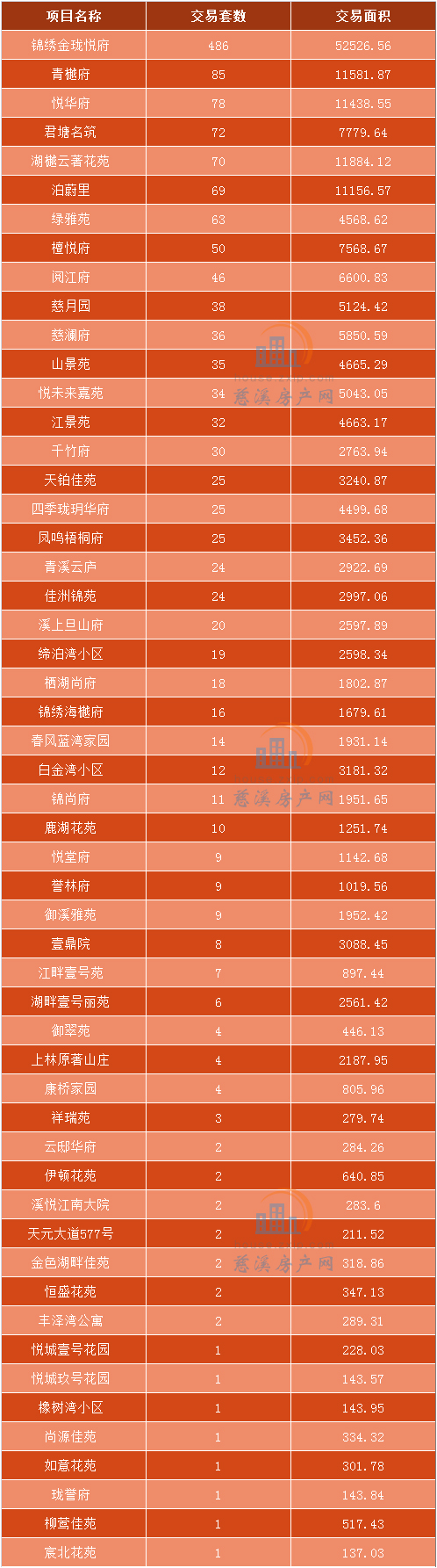 2020年8月慈溪商品房成交数据