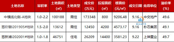 在土拍方面,9月份的土地市场依旧火热,共成交三宗土地交易。但与之前不同,这三宗土地交易皆设置了“限地价+竞配建”的模式,看样子是希望给土地市场“降温”,保持慈溪房地产市场的健康发展。
