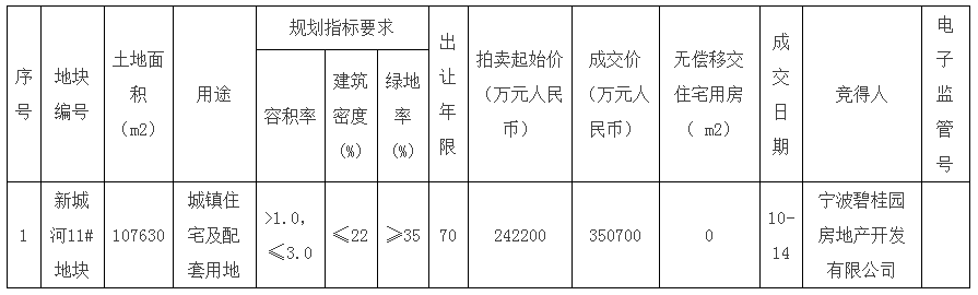慈溪市国有建设用地使用权拍卖出让结果(编号:CXGTCR2020037)