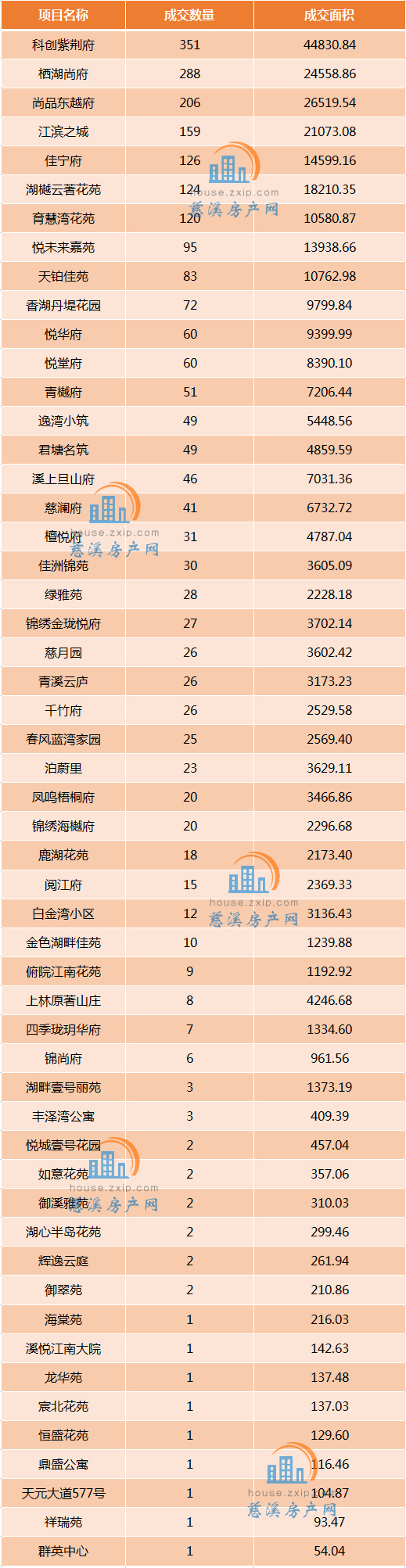 从成交排行榜上看,科创紫荆府以351套的成交量,交易面积44830.84㎡,摘得10月份慈溪商品住宅交易套数和成交面积排行的双桂冠,而栖湖尚府以288套的成交量夺得交易套数排行第二宝座的。紧接着是尚品东越府,以206套住宅成交量跻身前三甲。