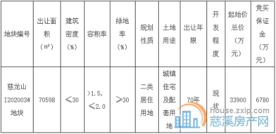 慈龙山I202003#地块出让设定上限价格,上限价格为50700万元。在上限价格内按照价高者得原则确定竞得入选人;当竞买报价达到上限价格时,转入在上限价格的基础上竞报住宅用房(人才安居专用房、保障性住房或拆迁安置房等政策性住房)程序,并按投报面积最高者得原则确定竞得入选人。竞配的住宅用房(含对应比例的停车库或停车位)建设、房源选定、移交接受等程序参照《宁波市人才安居专用房筹集管理办法(试行)》(甬建发〔2020〕6号)执行,建成后无偿移交龙山镇人民政府。