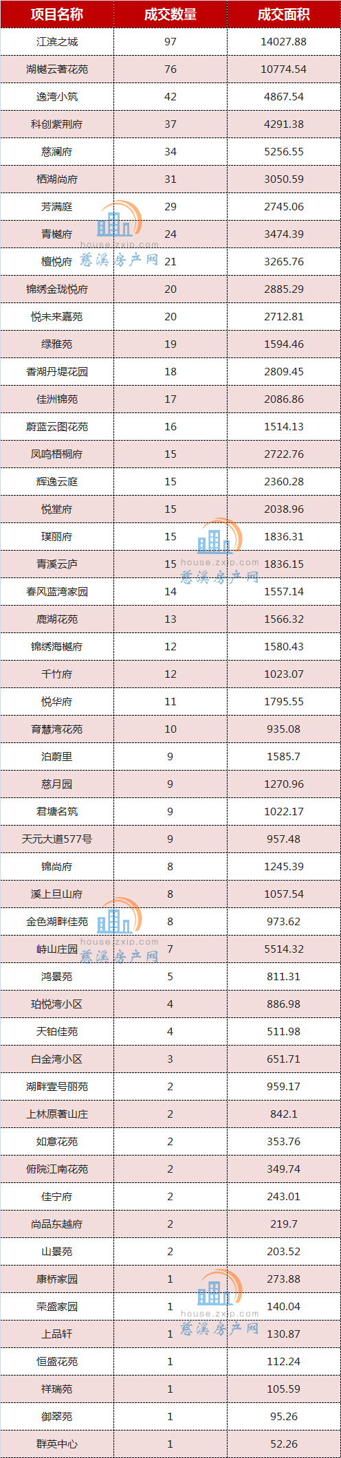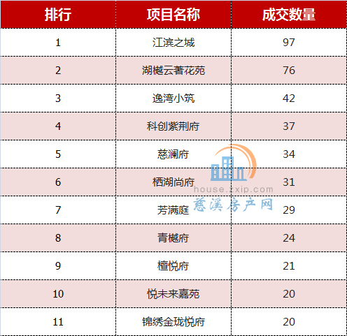 从成交排行榜上看,江滨之城以97套的成交量、14027.88㎡的成交面积,摘得12月份慈溪商品住宅交易套数和成交面积排行的双桂冠,而湖樾云著花苑以76套的成交量夺得成交数量排行第二宝座的。紧接着是逸湾小筑,以42套住宅成交量跻身前三甲。