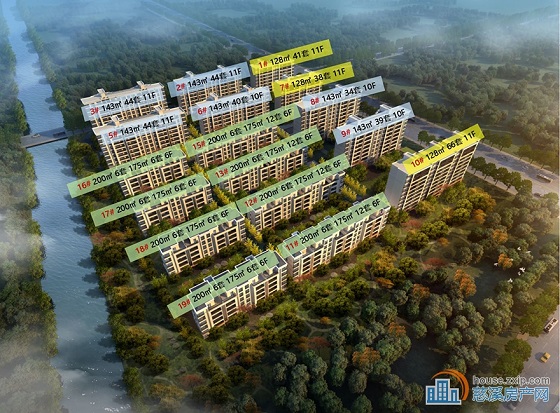由八幢叠墅、九幢洋房组成,约6-11层,主要户型建筑面积约128~210㎡,总套数510套。