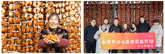 2020岁末,受疫情影响出口和天气等不利因素影响,富平县的柿饼产业受创,为助力富平县柿农增收、拓宽庄里镇柿饼的销路,金辉毫不犹豫地开展公益助农行动,深入了解果农真实困难和需求,用实际行动践行公益助农。