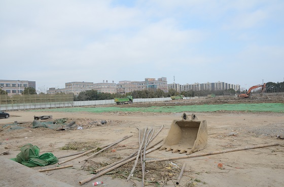 进入内部之后,看到原来的大成厂房已不复存在,挖掘机正在进行平整作业,已经完成了大半。