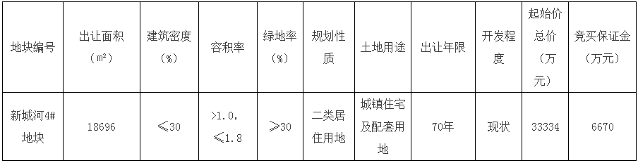 二、出让地块的规划指标、土地用途、出让年限、起始价总价及竞买保证金等如下: