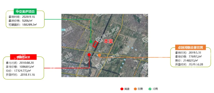 其中,2017年8月22日成交的明月湖B-03地块楼面价最高,为9680元/㎡,溢价率为86.86%,竞得者为中交。