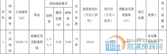 慈溪市国有建设用地使用权拍卖出让结果(编号:CXGTCR2021002)