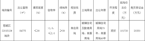 慈城区I201513#地块拍卖出让公告