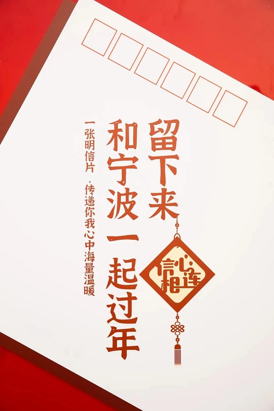 中海地产联合美团、顺丰等平台,指定优秀派送员,在外卖送达、快递送到时,附上一张宁波城市明信片,以这种特殊的方式,送上新年的祝福,对在宁波过春节的全体市民,表达“谢谢你,留下来,和宁波一起过年”的心意。
