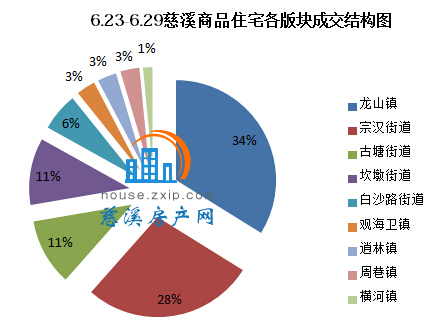 慈溪商品住宅各版块成交情况中,城区版块占55.38%,城区商品住宅成交均价12165.23元/㎡。龙山镇备案22套,占34%;宗汉街道备案18套,占28%;古塘街道与坎墩街道各备案7套,各占11%。
