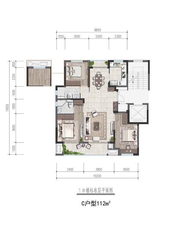 (建面约112㎡C户型实景图)
