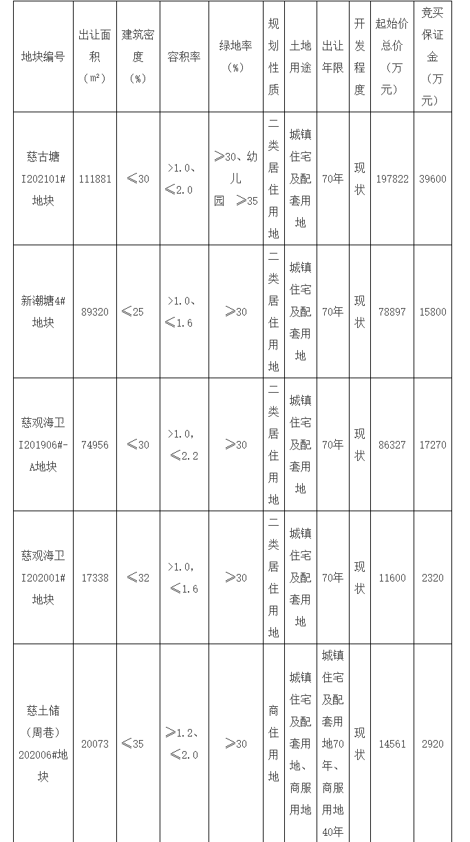 慈溪5宗涉宅地使用权拍卖出让公告