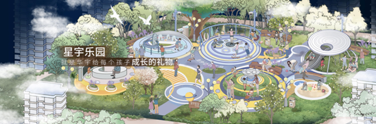 2019年,华宇在行业内率先提出优+景观的产品概念,聚焦儿童游乐区与架空层,让聚空间有互动化场景。经过研究全龄场地常出现的痛点问题,华宇集团从亲子互动与娱乐成长两个维度出发,主题产品星宇乐园全面落地。它不仅是儿童的游乐场地,也是互动的亲子空间,让家长不仅仅是看护,更是参与其中,与孩子一同玩耍,共同成长。