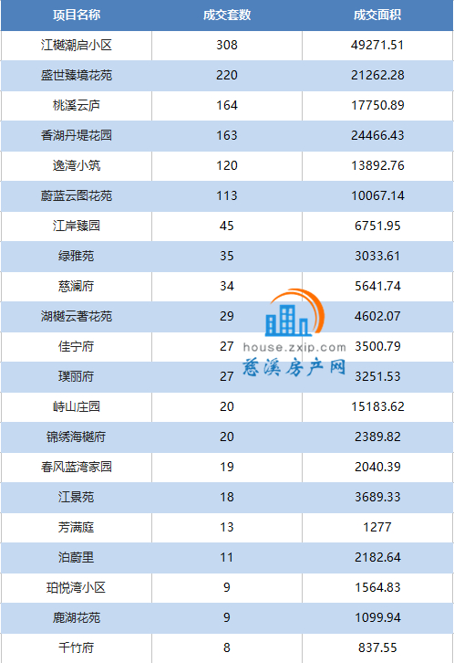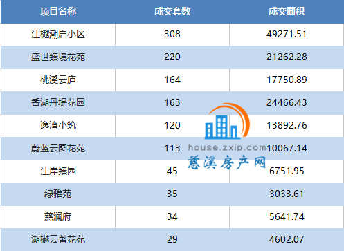 慈溪楼市5月成交备案表(以成交数量降序排列)