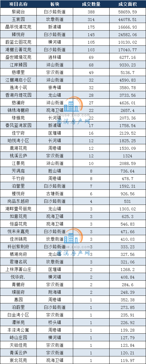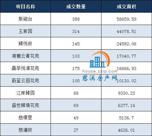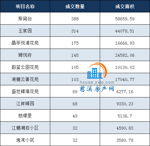 慈溪楼市6月成交备案表(以成交数量降序排列)