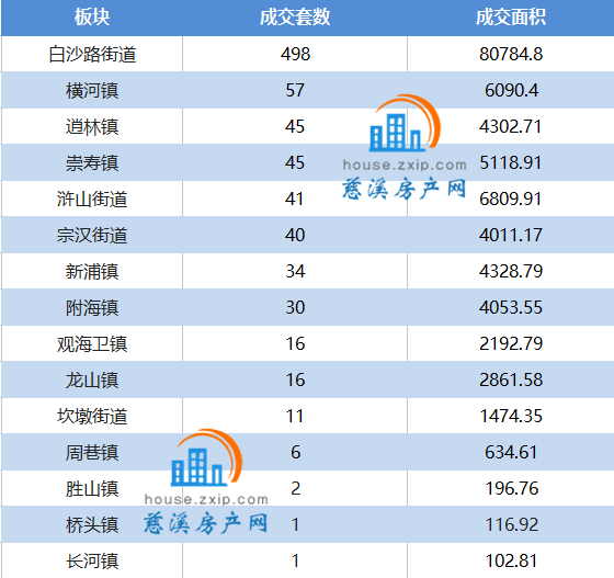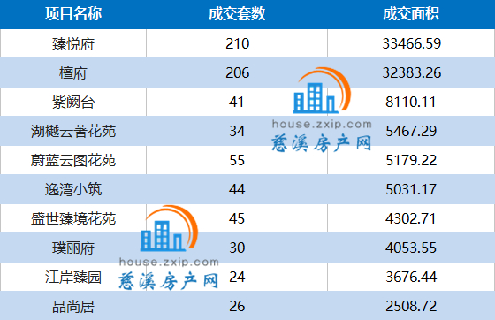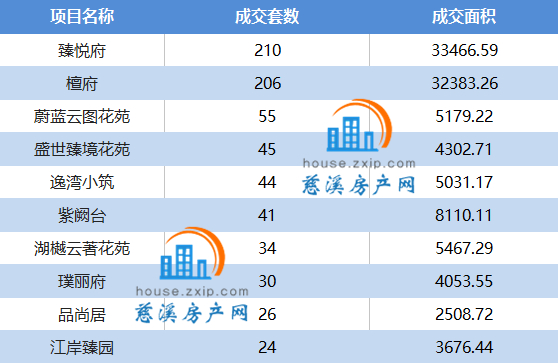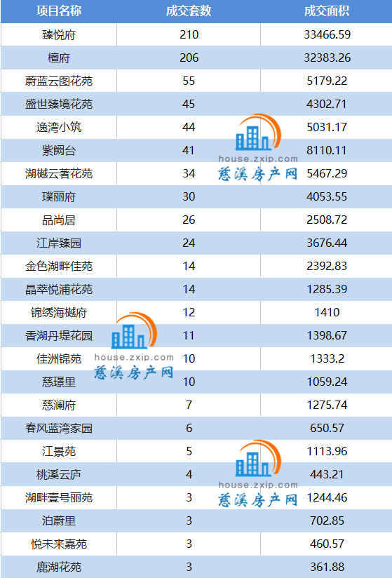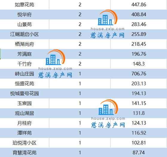 慈溪楼市7月成交备案表(以成交数量降序排列)