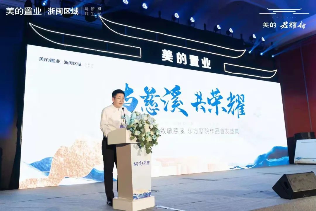 在此次发布会上,美的置业浙闽区域品策负责人——张重阳作为品牌宣讲人。张总表示,美的置业作为中国上市房企24强(评选机构:观点指数研究院),始终坚持“智慧地产制造商”发展定位,布局全国6大经济核心区,锻造了350个精品项目,并通过智慧化、工业化、数字化的高品质建造和服务精琢作品,以匠心铸造更东方的园林,智慧服务更美生活,引领慈溪高端人居新时代。