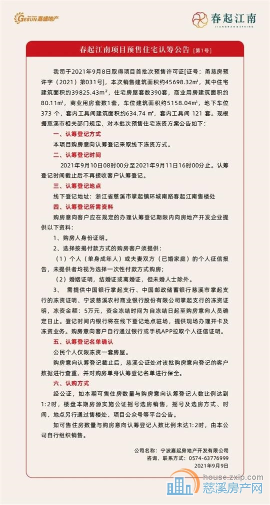 嘉盛•春起江南丨项目预售住宅认筹公告