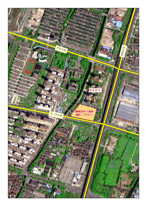 新城河46-C地块位于白沙路街道,东至东三环绿化带、南至北二环路(规划宽度34米)、西至二灶潭路(规划宽度24米)、北至盛泰嘉苑。