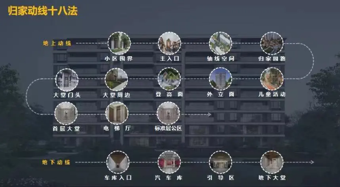 别具匠心的微笑拱门、经典T系简约高级灰线条立面、一环两轴礼、活、居、享、乐五重社区体验的全龄化园林……各种关于艺术和审美在旭辉的操作下被具象化为一页页和谐的符号。