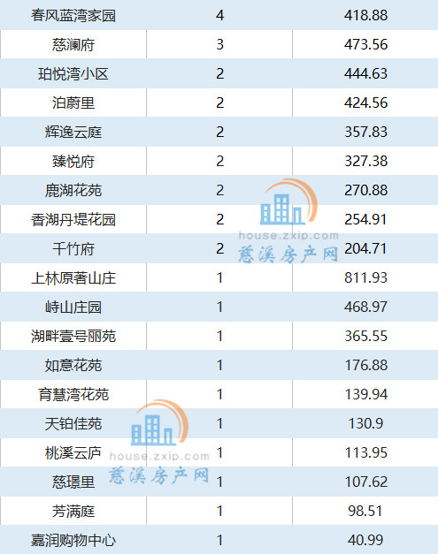 慈溪楼市10月成交备案表(以成交数量降序排列)