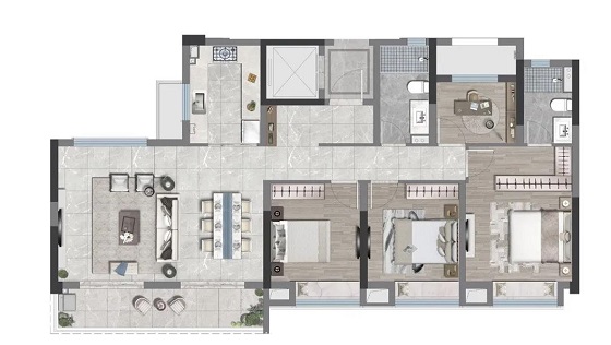 这让不少浅睡眠人士大呼“贴心”,与传统动静分离户型不同的是,这款户型的三个卧室都近邻卫生间,这下也不用穿越大半个房间起夜了。
