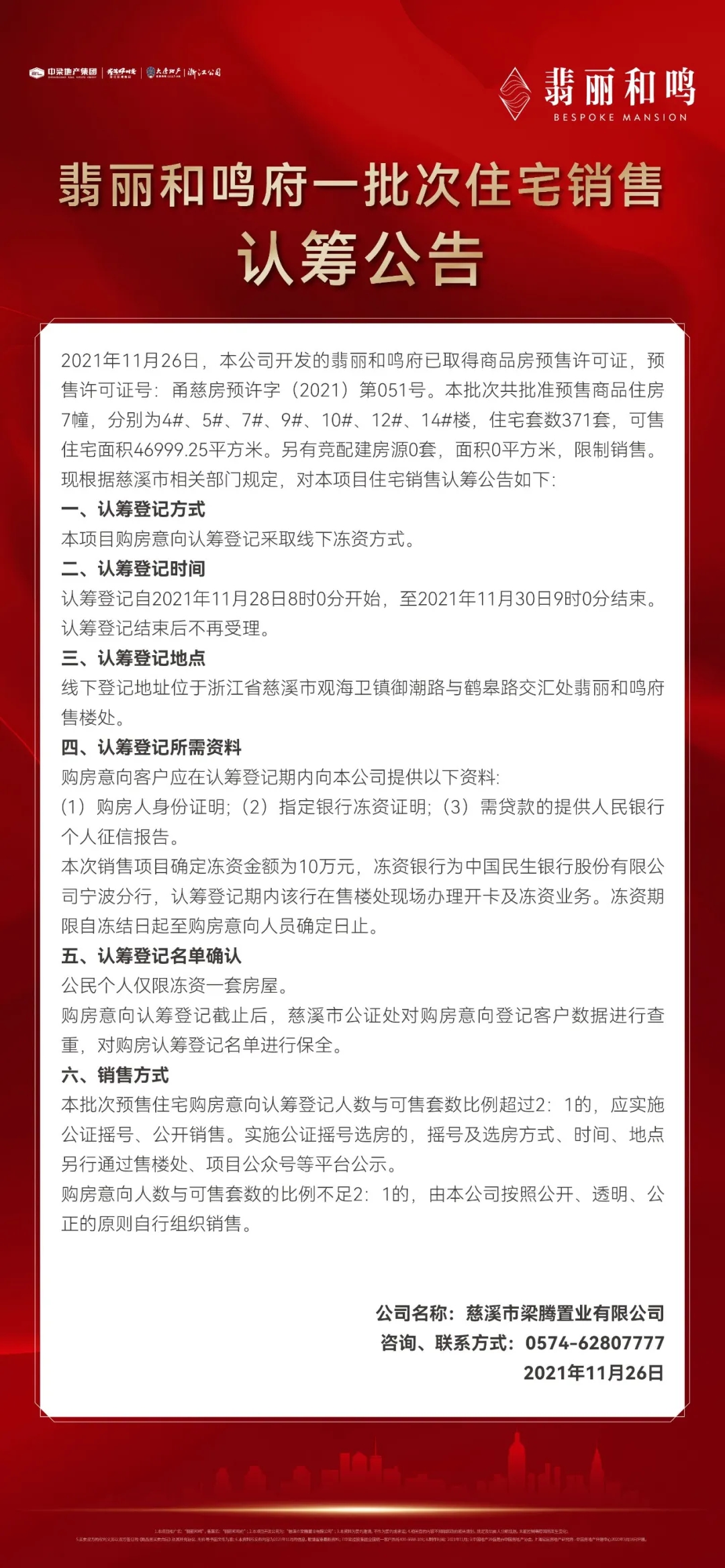 翡丽和鸣府一批次住宅销售认筹公告