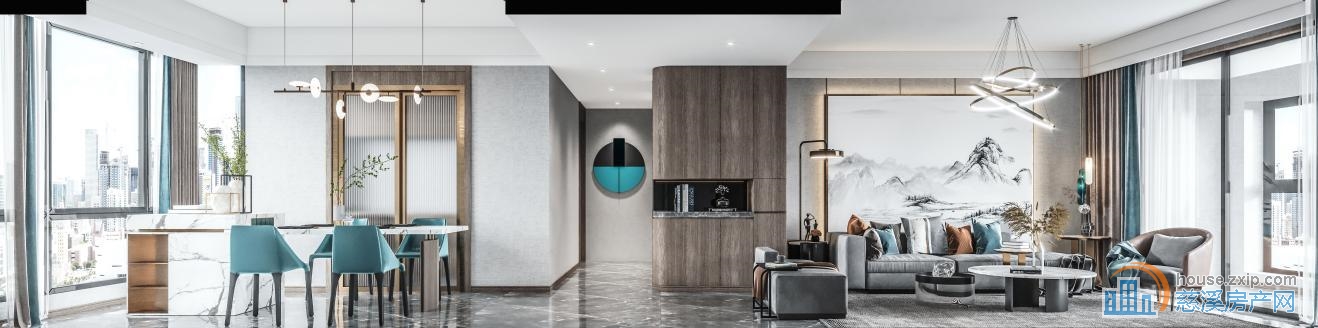 逸湾小筑建面约142户型客厅+餐厅效果图