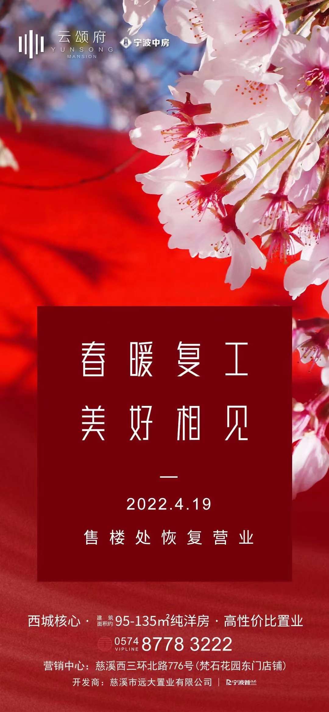 发布:2022-04-19慈溪房产网编辑:孙静 相关楼盘:云颂府