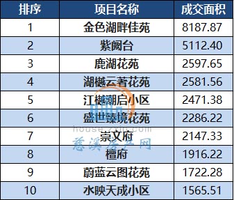从成交排行榜上看,位于新浦镇的金色湖畔佳苑以55套的成交量,摘得2022年4月份慈溪商品住宅交易套数的冠军,而位于白沙路街道的紫阙台以31套的成绩夺得成交数量排行第二的宝座。紧接着是逍林镇的盛世臻境花苑和古塘街道的崇文府以23套住宅成交量跻身成交量并列第三。