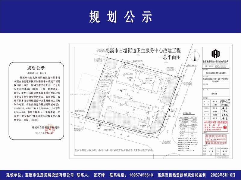古塘街道社区卫生服务中心改建工程规划公示 (城建示【2022】第130号)