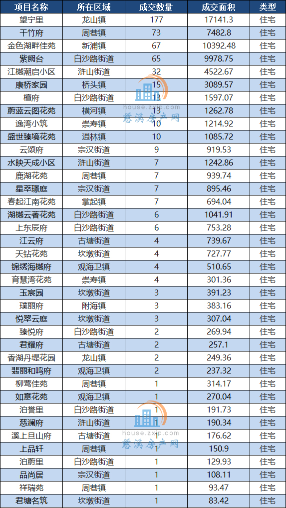 慈溪楼市5月成交备案表(以成交数量降序排列)