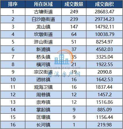 其中,古塘街道以月成交249套居于榜首,其次是白沙路街道以239套的成交量位居第二。