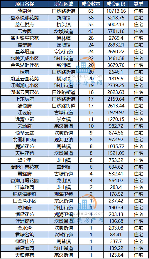 慈溪楼市7月成交备案表(以成交数量降序排列)