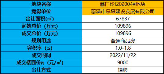 慈白沙I202004#地块使用权拍卖结果