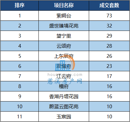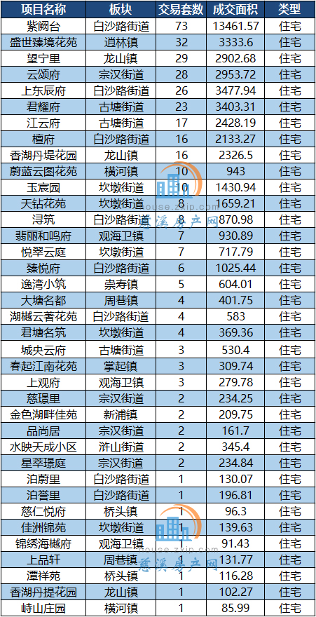 慈溪楼市11月成交备案表(以成交数量降序排列)