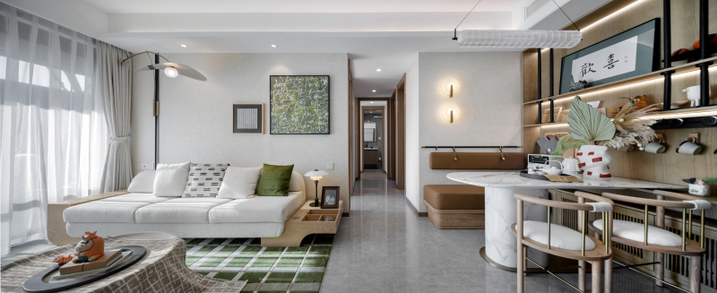 朗阔餐客厅一体空间,阳光运动、沙发投屏、iPad追剧,全家社交休闲主场