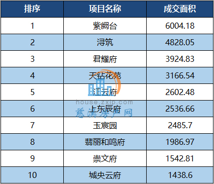 商品住宅成交面积TOP10