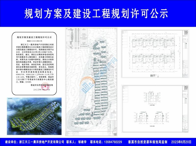 浙江天工一晨洋房地产开发有限公司拟申请办理慈横河I201809#地块工程的规划设计方案及建设工程规划许可,现将规划方案予以公示。公示时间自2023年6月21日起十日内,如有意见、建议,请在公示期间来电或来信到市行政服务中心规划窗口。涉及重大利害关系的,利害关系人如需申请听证,请在公示结束前向我局提出申请,听证申请人须提供姓名、住址、电话号码、身份证号码、签名及证明利害关系等事项的书面材料。若无异议,我局将依申请办理规划设计方案及建设工程规划许可证。市自然资源和规划局联系电话:63961739、63961126(上午8:00-11:30,下午1:30-4:30,节假日除外),来信请寄:慈溪市三北大街777号慈溪市行政服务中心规划窗口,邮编:315300。