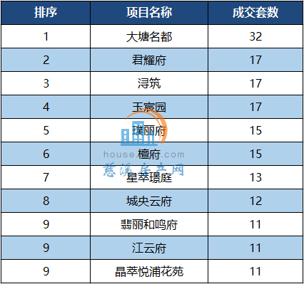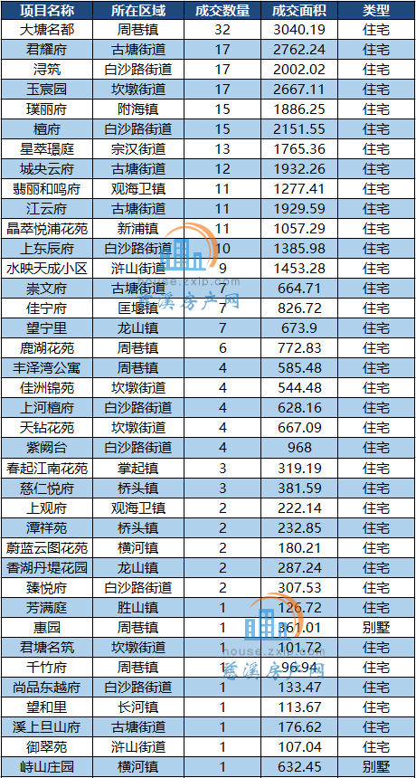 慈溪楼市10月成交备案表(以成交数量降序排列)