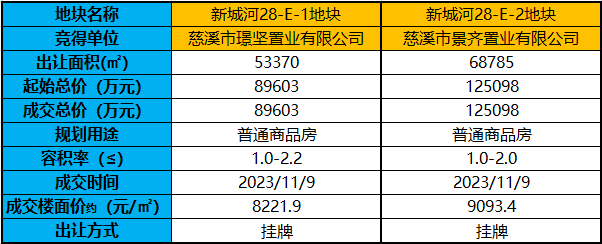 璟坚置业拍下28-E-1地块,景齐置业拍下28-E-2地块