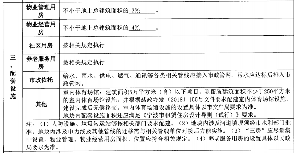 地块配套设施要求: