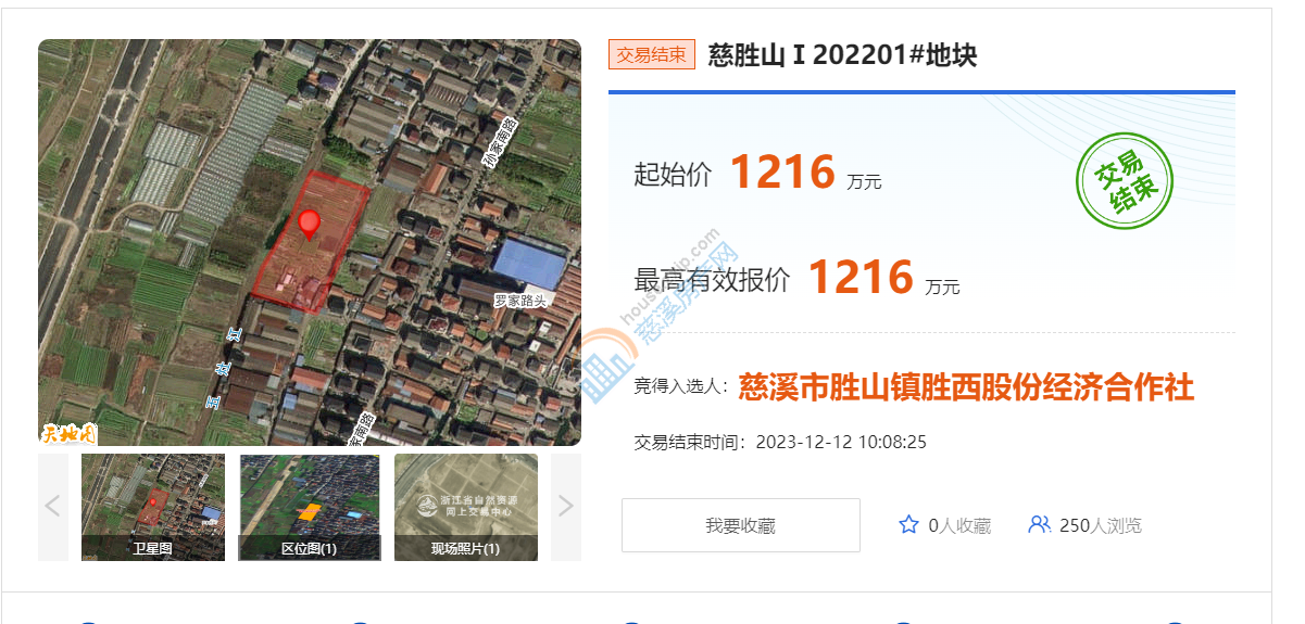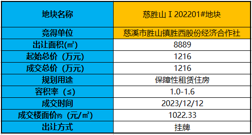 胜西股份经济合作社1216拍下慈胜山Ⅰ202201#地块
