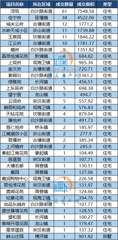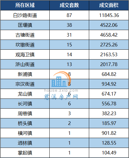其中,白沙路街道以月成交87套居于榜首,其次是匡堰镇以38套的成交量位居第二。