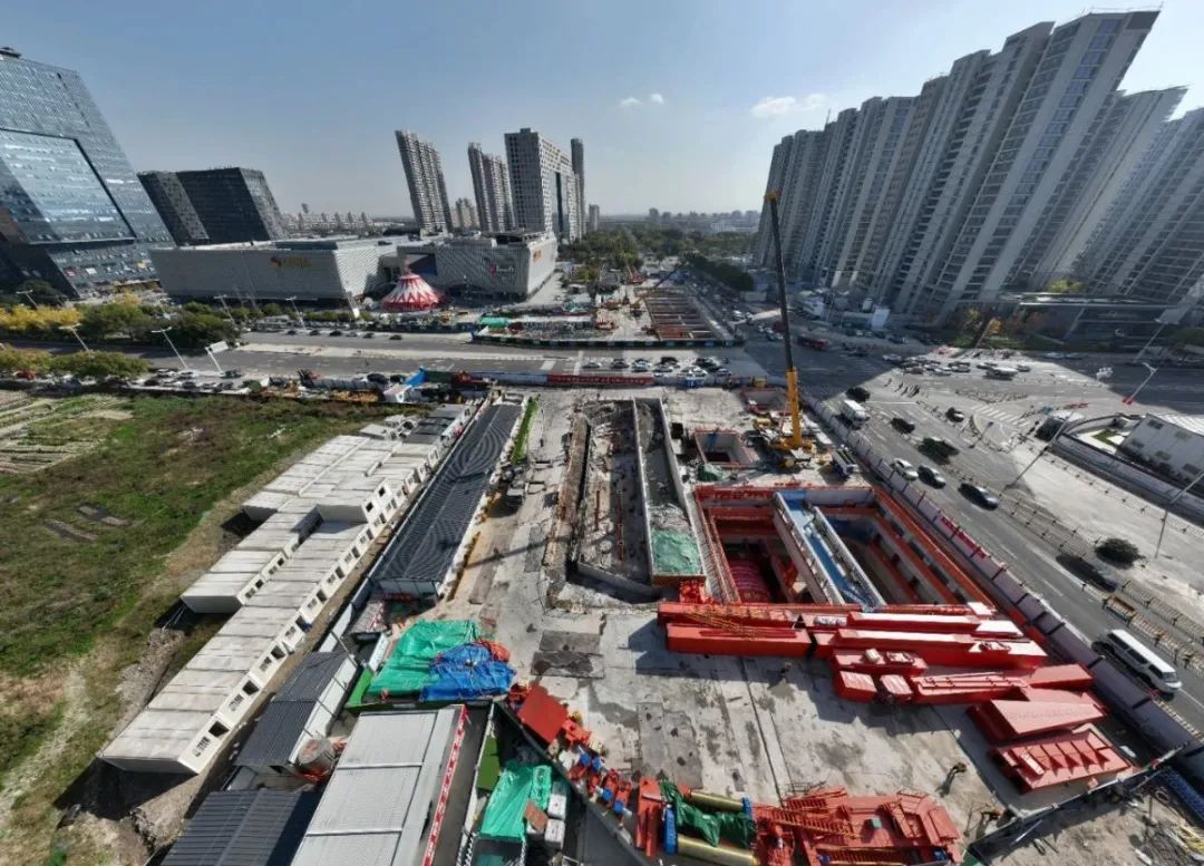 项目概况:慈溪高铁站位于三塘横江以北、新周家路江西侧、浒崇公路东侧、北外环路南侧地块,与国铁通苏嘉甬线十字交叉。车站为地下二层12.5m岛式站台车站,车站净长约492.2m,标准段结构宽度22 m,标准段底板埋深为19.8m。共设3个出入口、4组风亭,均为明挖地下车站。