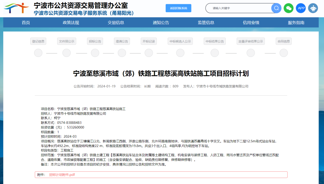 宁波至慈溪市域(郊)铁路工程慈溪高铁站
