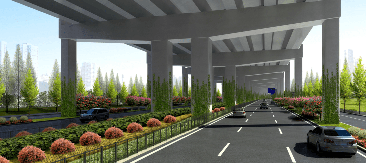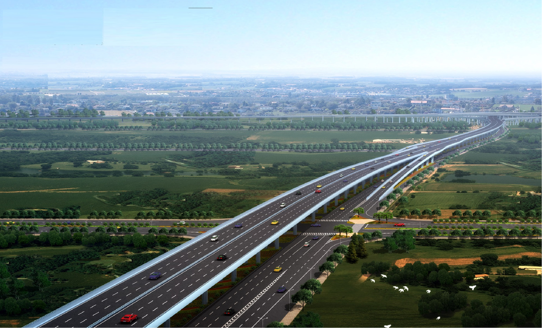 本工程采用高架道路+地面道路形式,高架道路采用一级公路标准,兼顾城市快速路功能,设双向六车道,设计速度 80 公里/小时;地面道路采用一级公路标准,设双向六车道,设计速度60 公里/小时。高架道路设互通式立体交叉 3 处,分别为高新互通、高王互通、历山互通。地面道路与城市北环、新兴大道、中横线、宗怡路、嘉利路、北三环、明州路、开发大道、北二环、三北大街、周浒公路交叉,设置灯控平交口。项目建安费约 31.09 亿元,工期48个月。