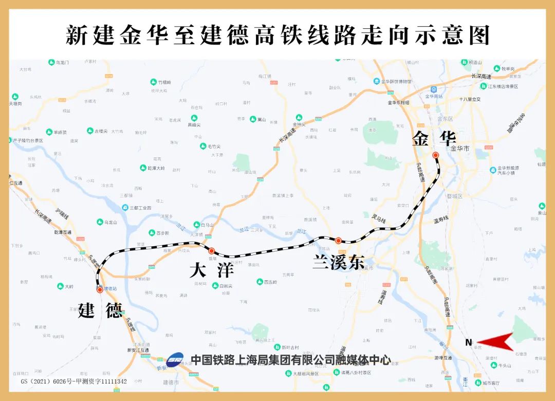 金建高铁自既有金华站引出,向北经兰溪市、建德市,在建德站接入杭黄高铁,全长64.51公里,设计时速250公里。